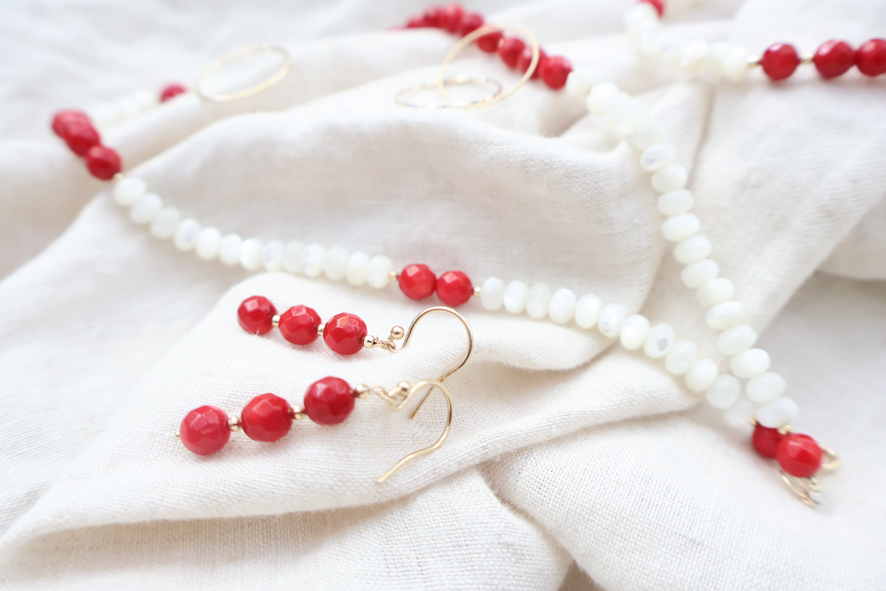 陽だまりの粒が、そっと心に触れる。染め珊瑚のやさしい色彩が、日々に穏やかな温もりを添えるコレクションです。
