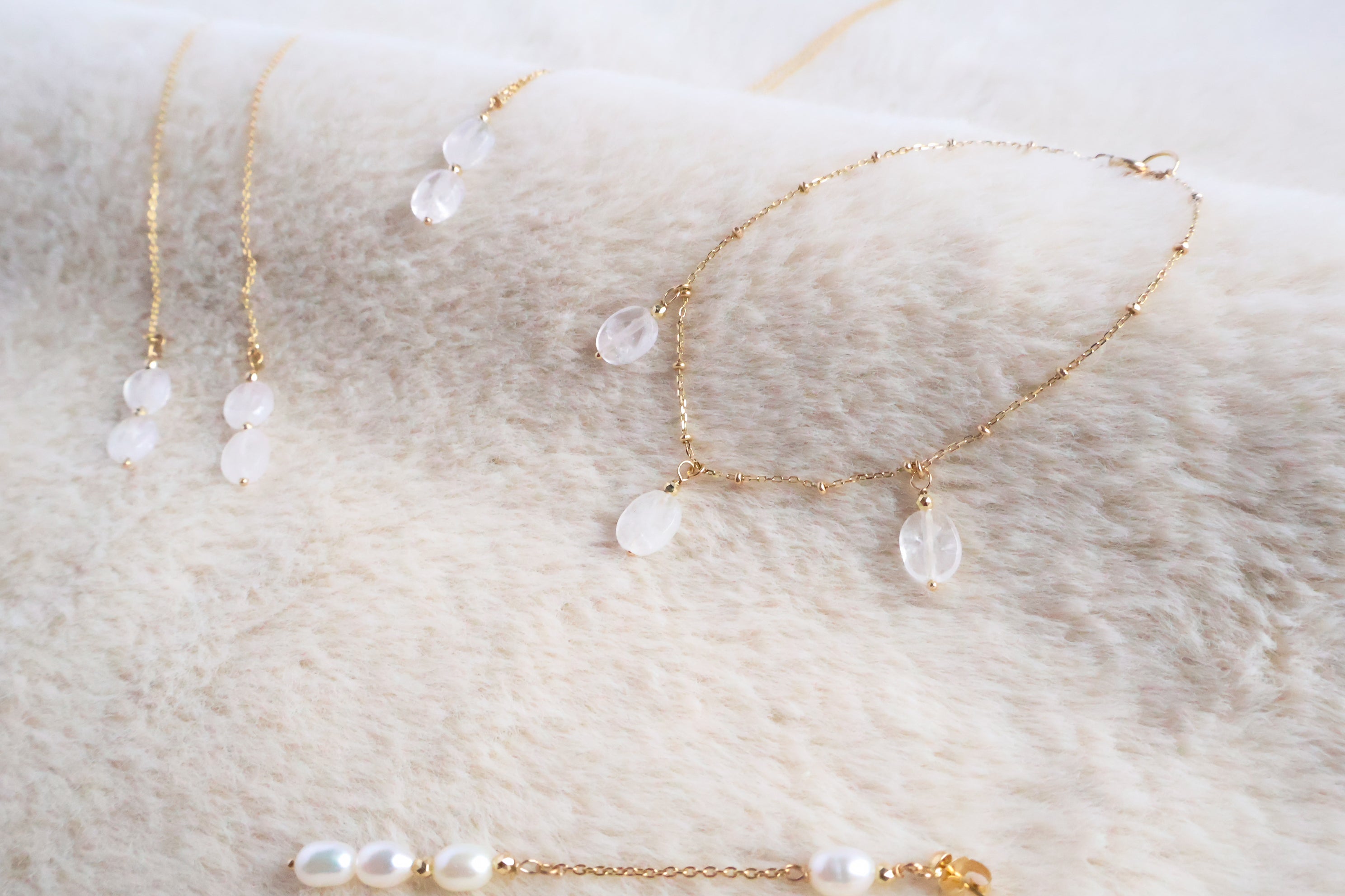 泡のように、儚く、光のように、静かに。アクアマリンと淡水パールが紡ぐ、水の記憶を宿した幻想的なコレクションです。