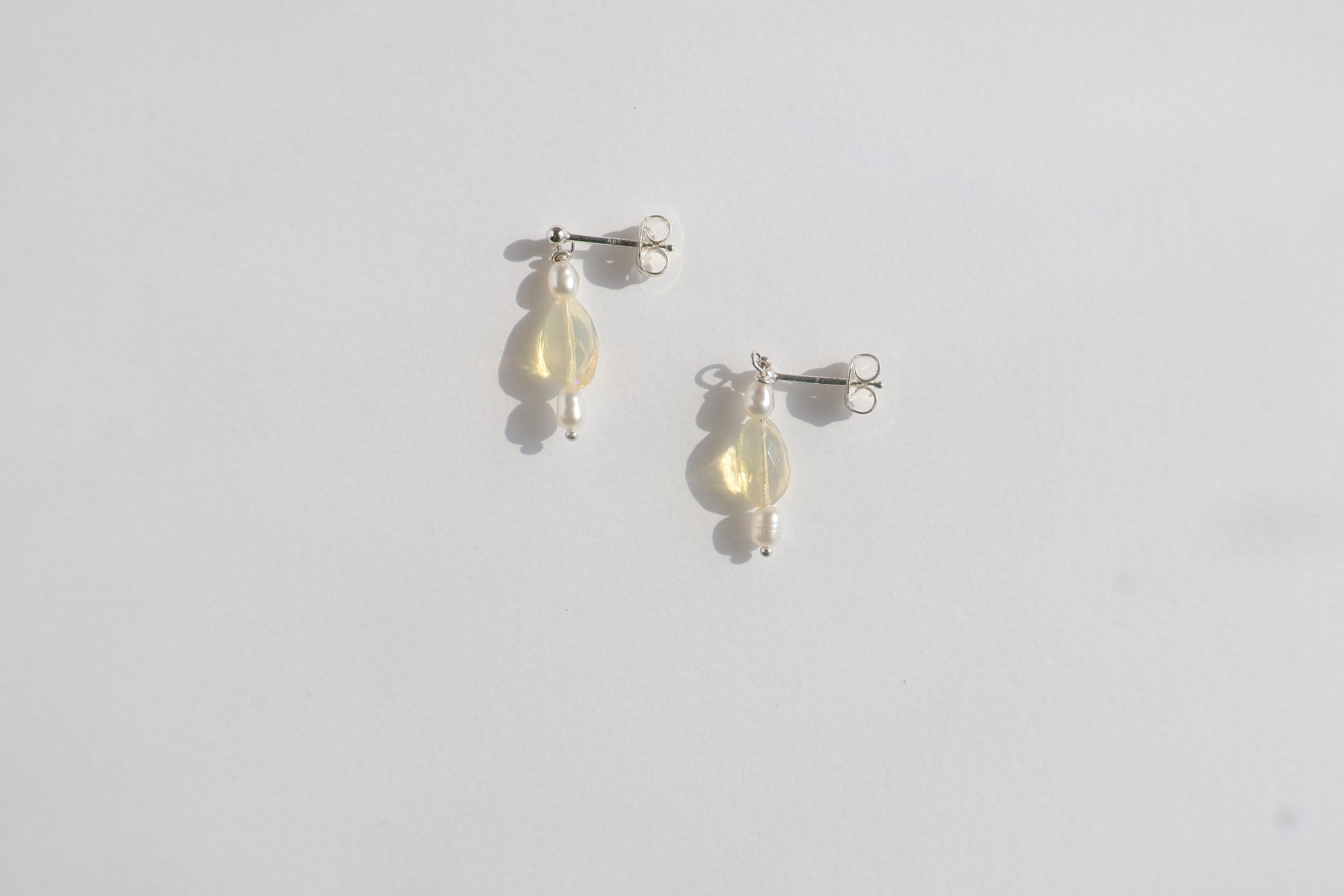 貴族の娘たちが社交界にデビューした「Debutant(デビュタント) 」がインスピレーション。やわらかくめらりと輝くイエローのエチオピア産オパールと、ぽとんとふくよかな純白の美しさが印象的な淡水真珠。太陽の光でオパールらしい虹色が踊るように見られるのも楽しいジュエリーです。
