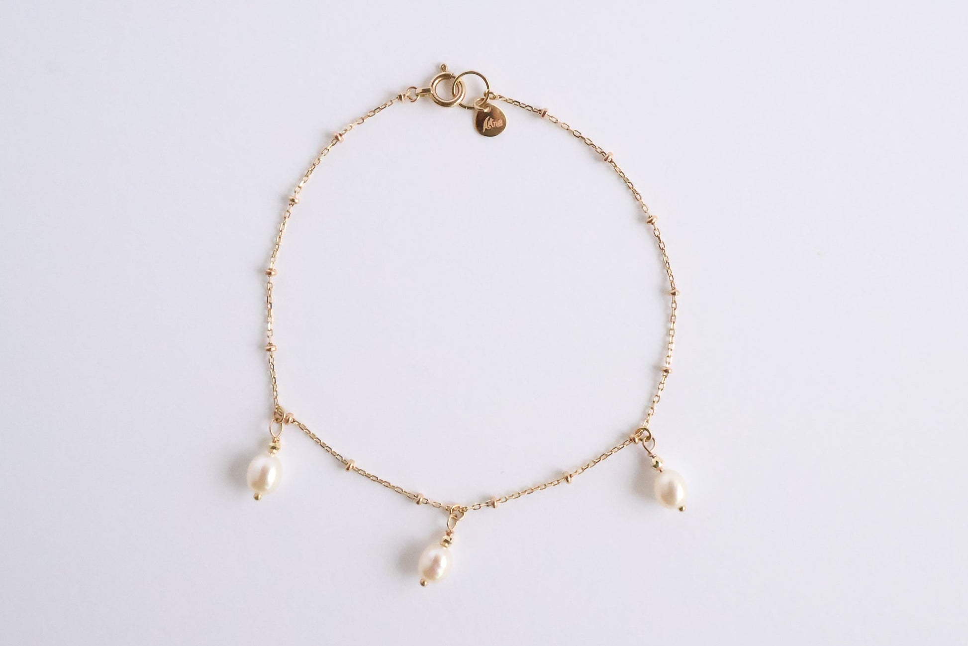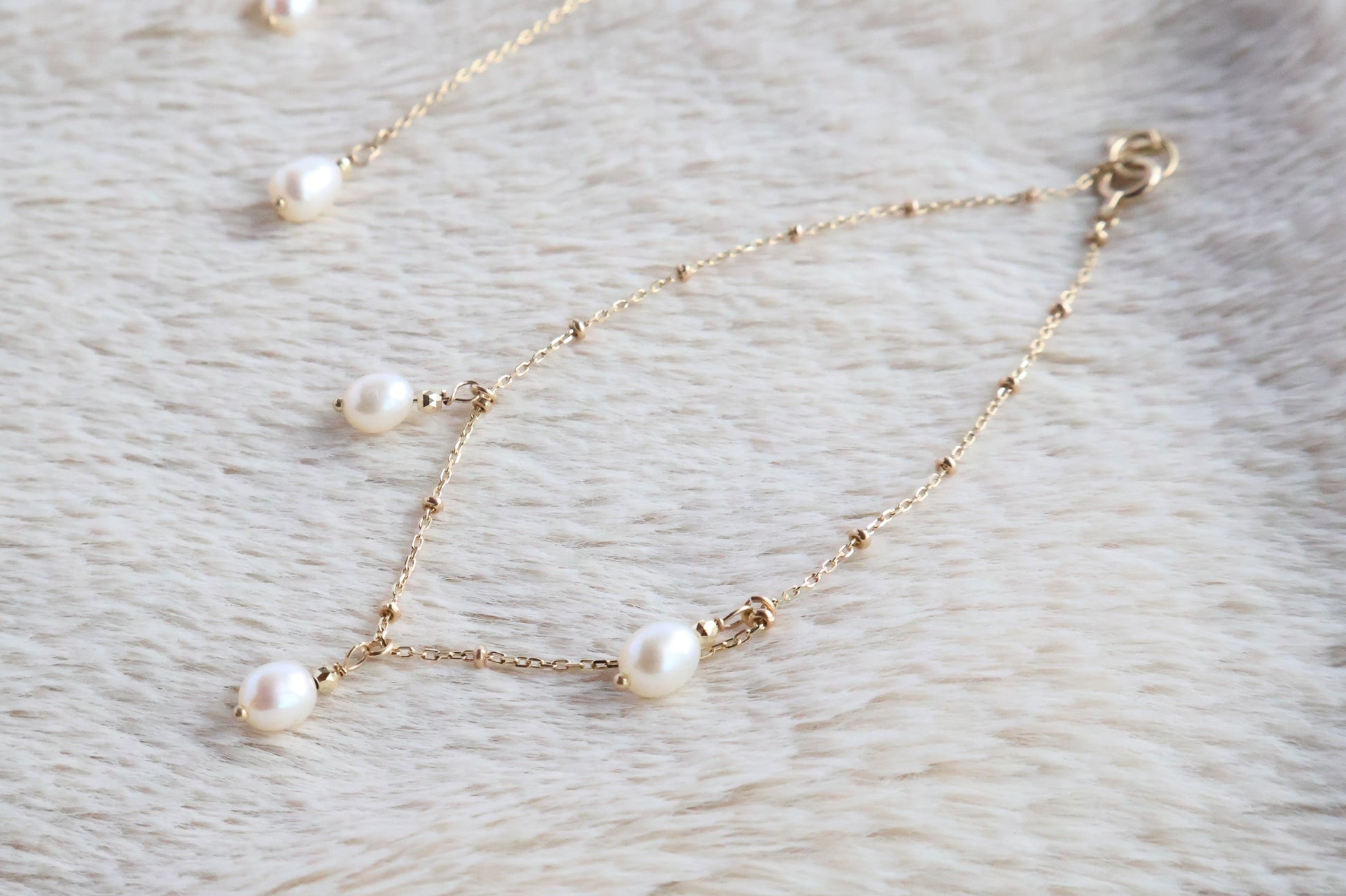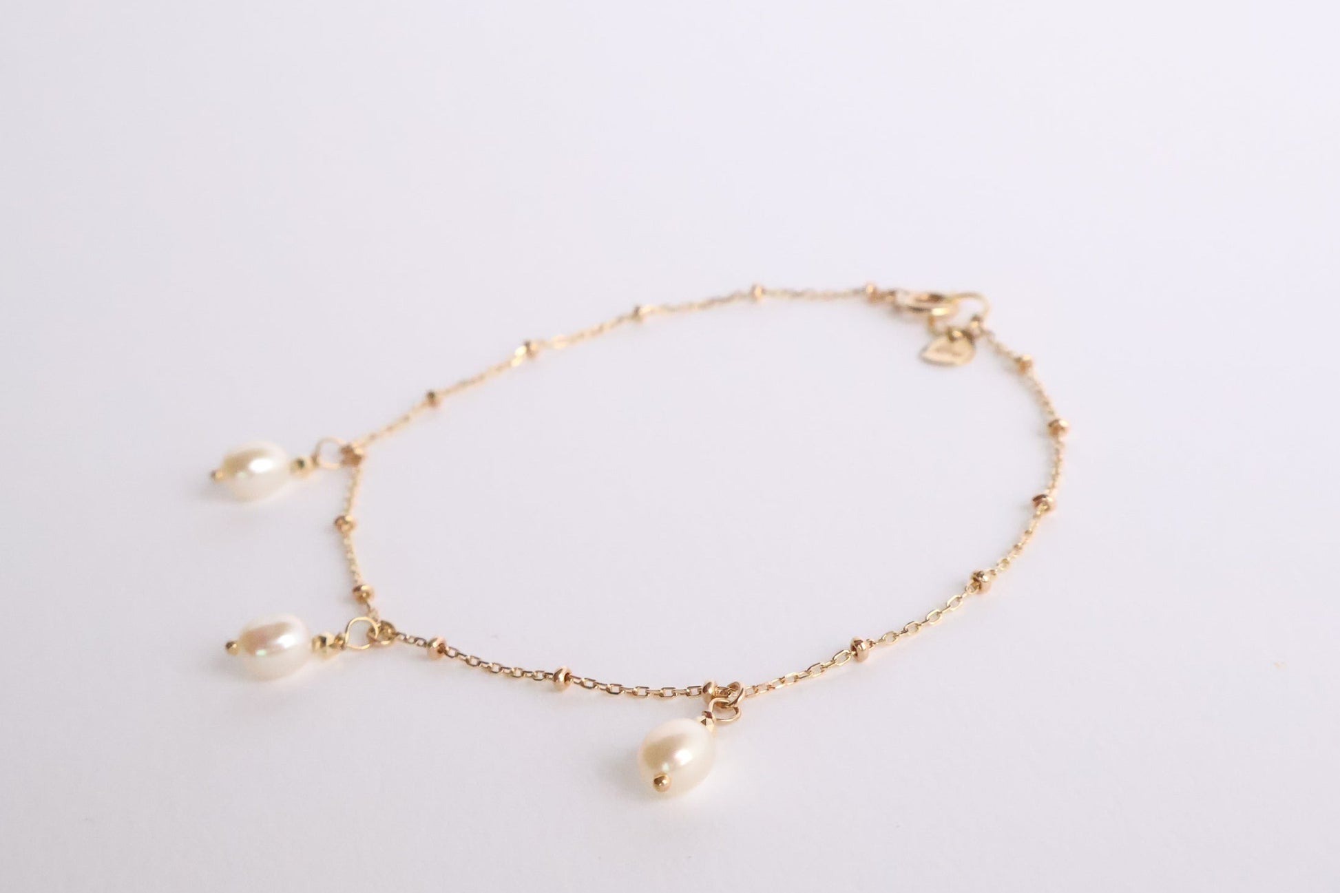淡水パールをポイントに配した、10Kチェーンのブレスレットです。