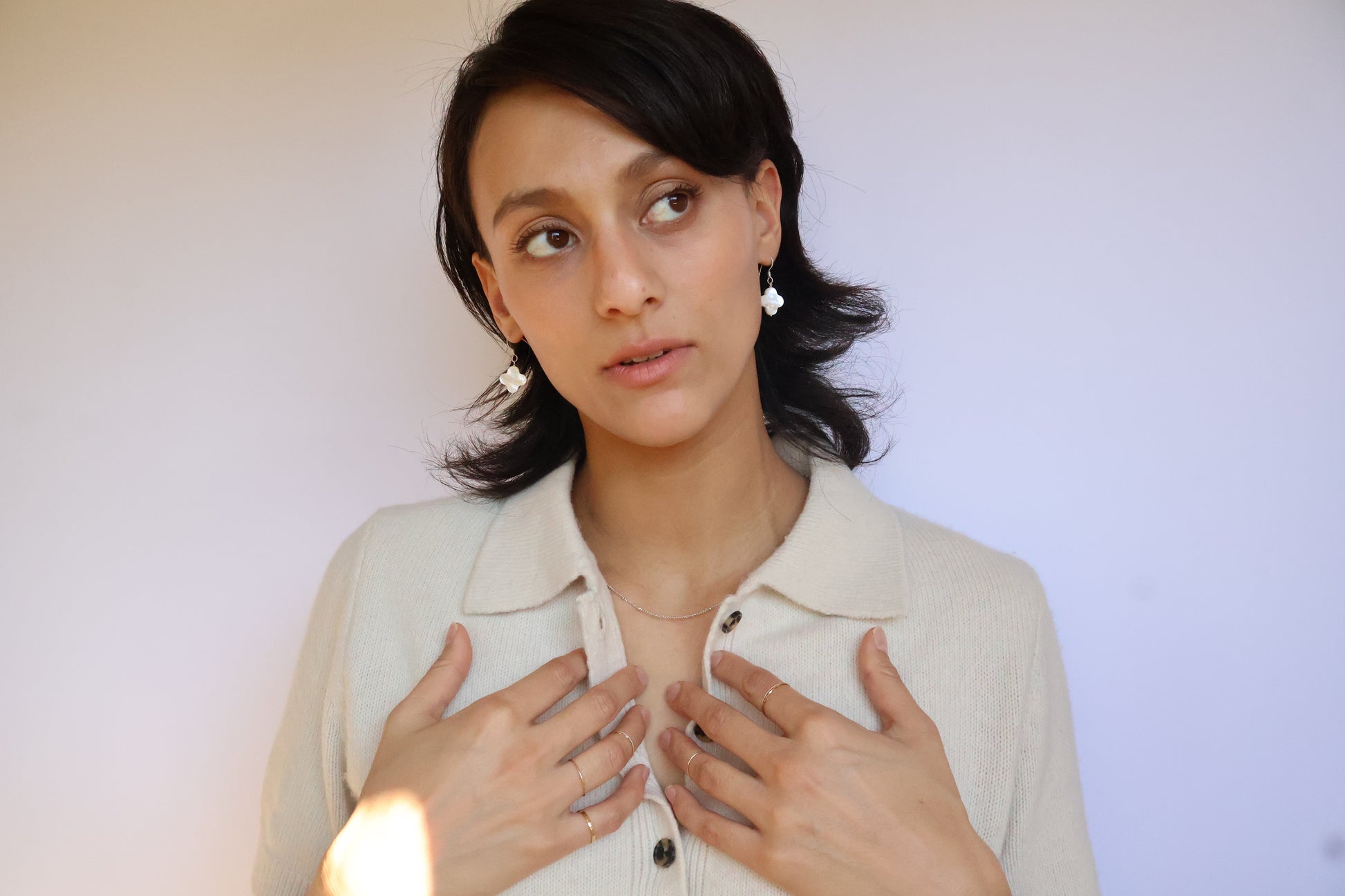 ※ 本商品は、天然石ビーズと無垢の貴金属パーツを組み合わせた繊細な構造となっております。強い衝撃や摩擦、水濡れは変質や破損の原因となりますのでご注意ください。ご使用後は乾いた柔らかい布で軽く拭き、直射日光や湿気を避けて保管いただくことをおすすめいたします。詳しいお取り扱いについては、別途 ケアガイドをご参照ください。