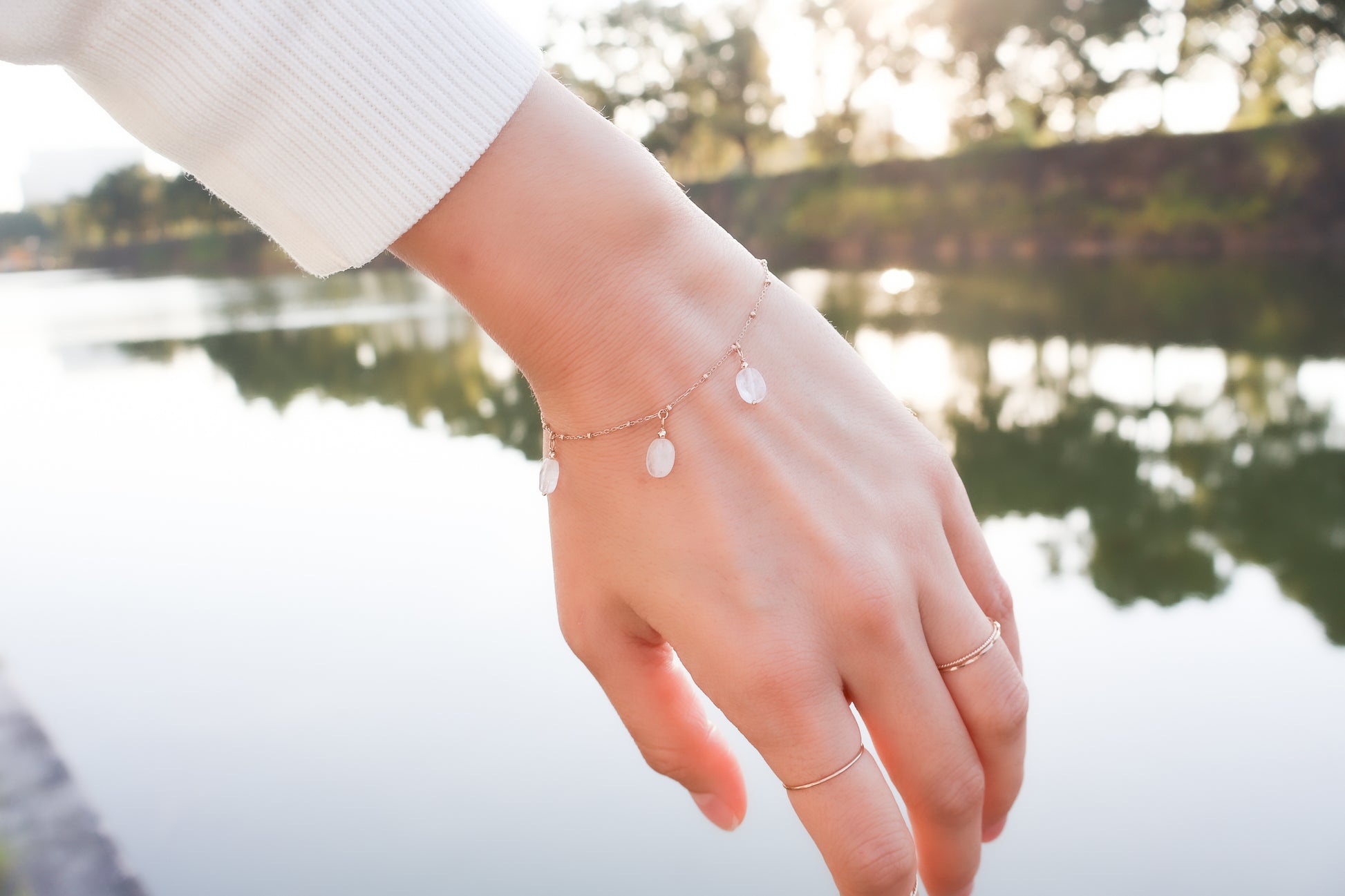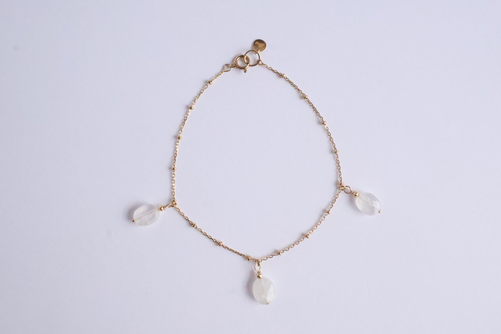 細やかなチェーンと小さな14Kビーズが、手首に沿って繊細なきらめきを添えます。