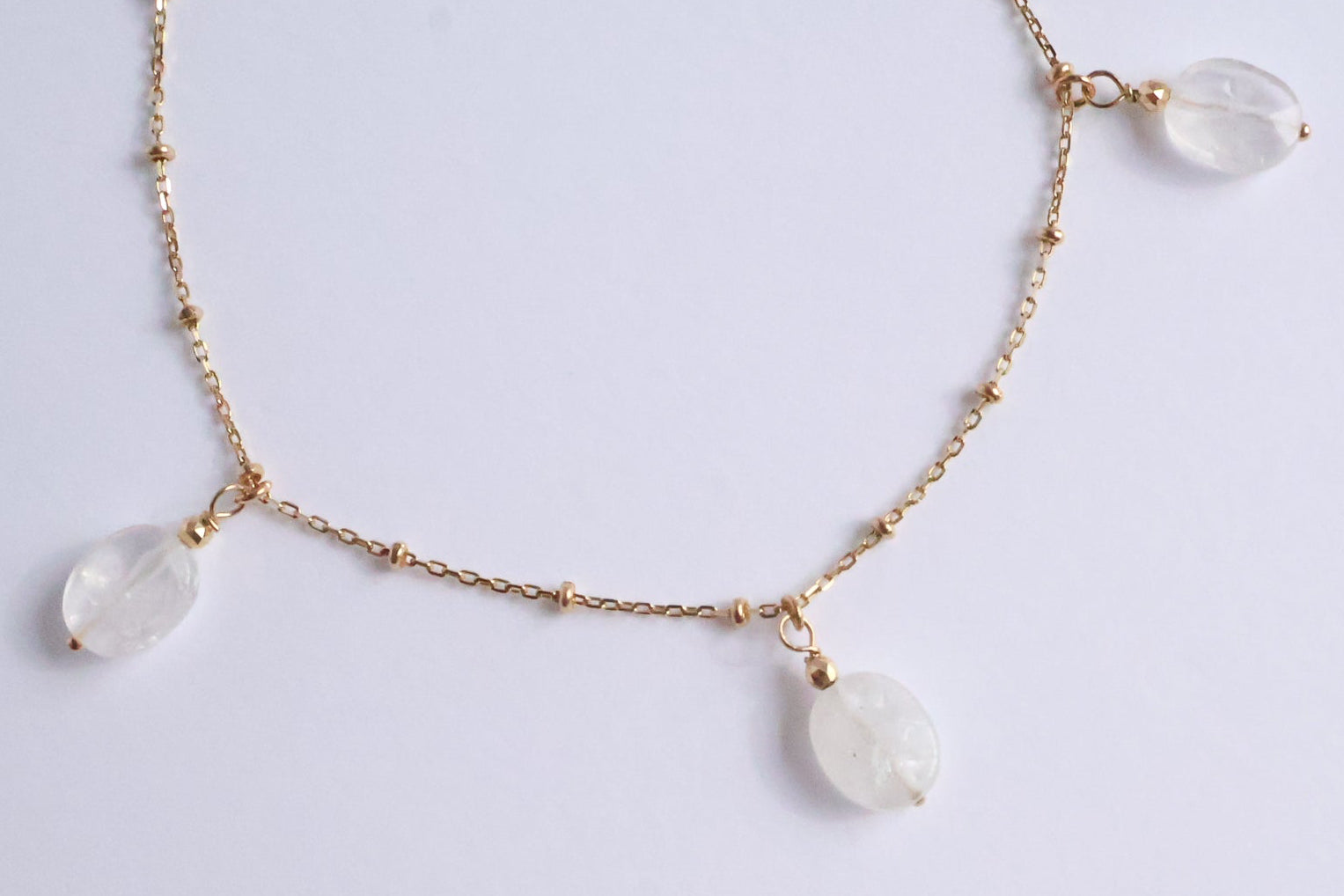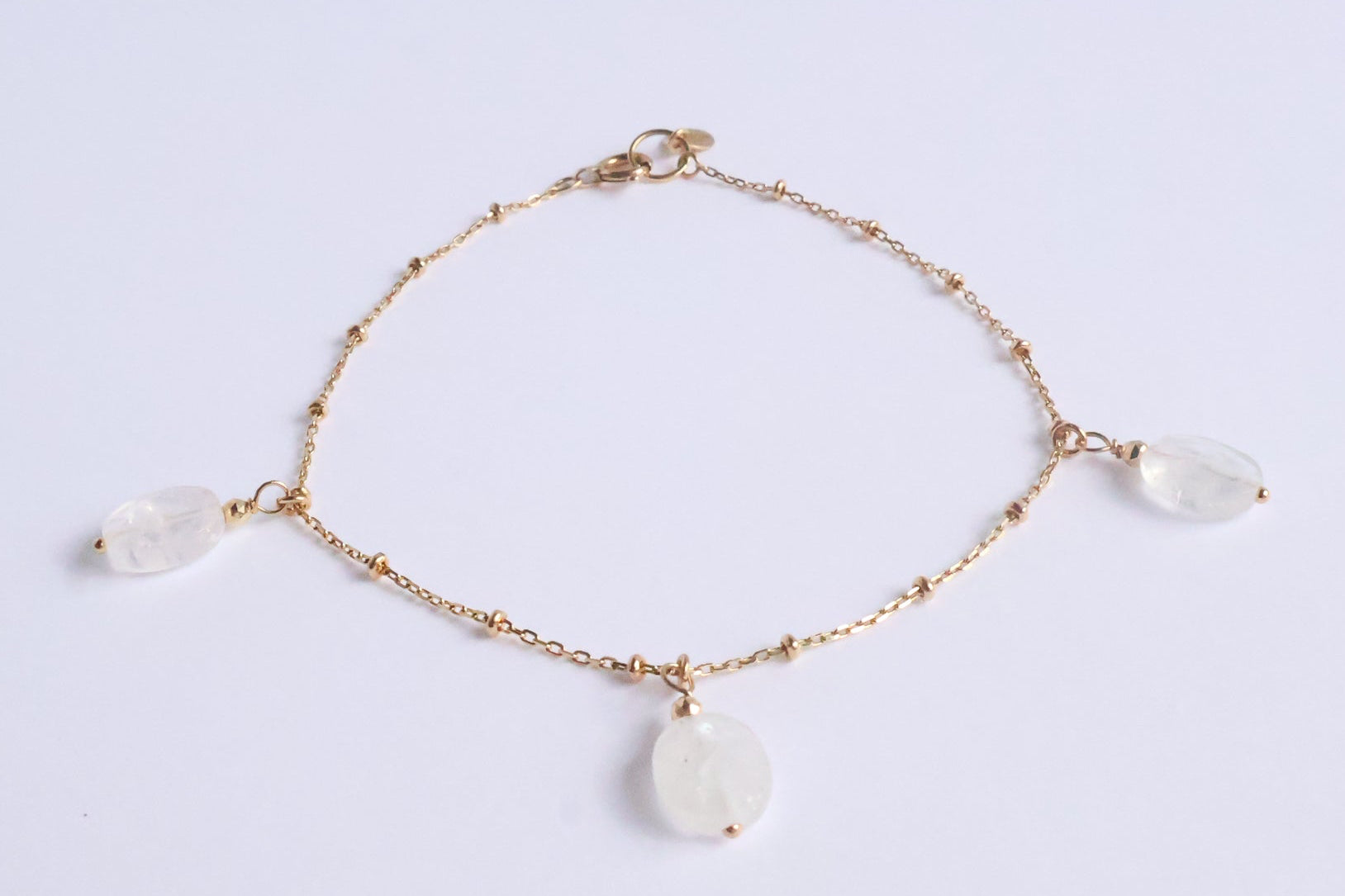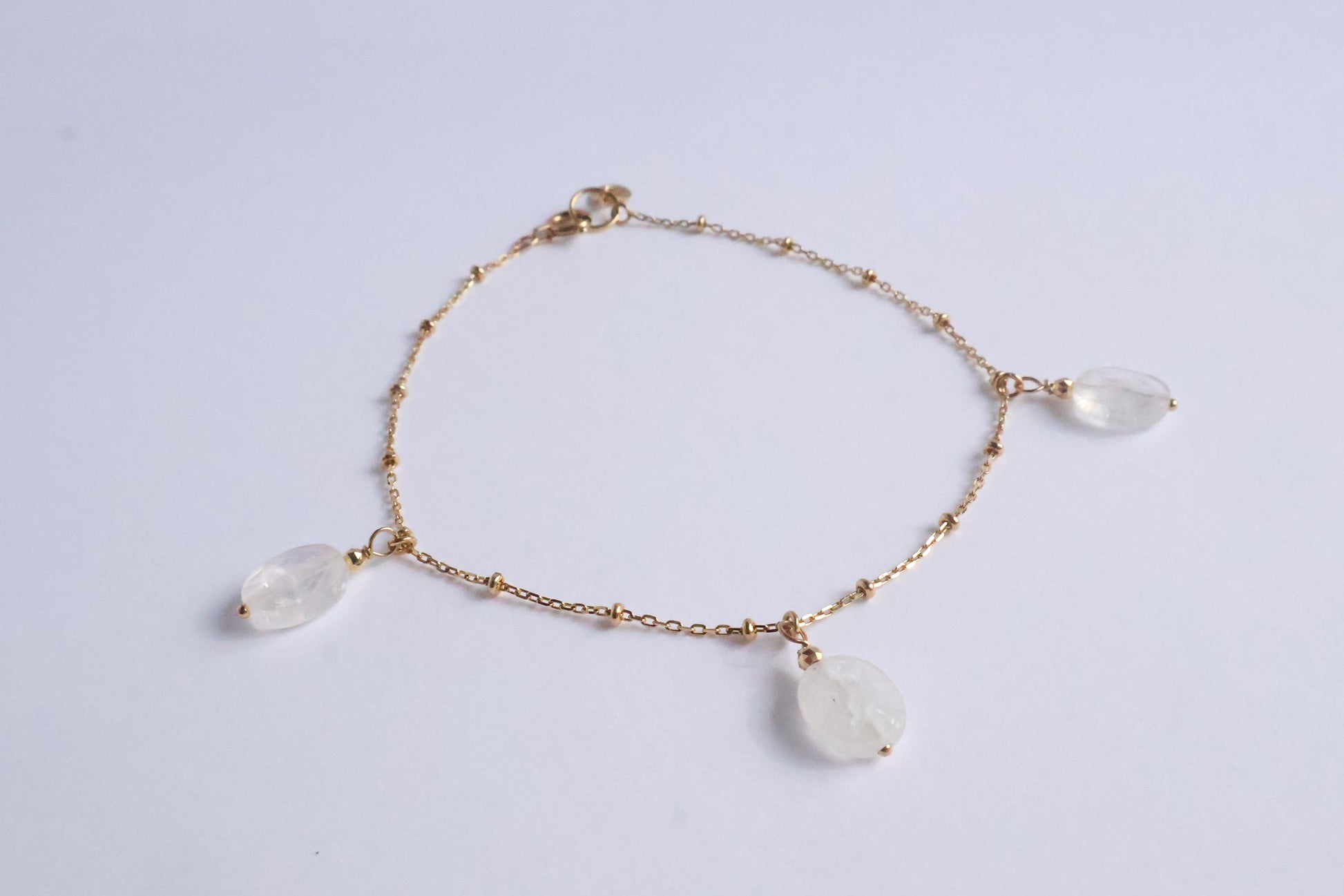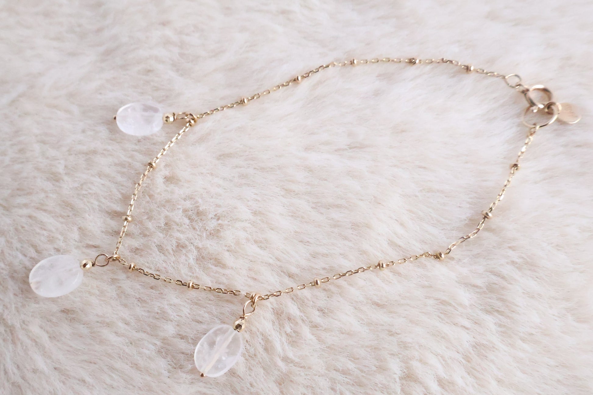 ローズクォーツを3つのポイントに配置した、10Kチェーンブレスレットです。